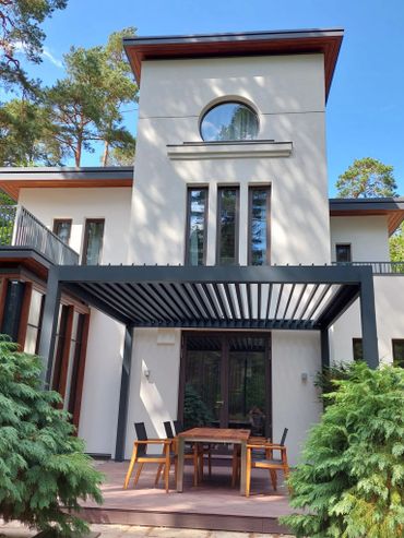P-190 model is a carefully designed pergola with modern lines. A solid aluminum structure with orientable slats, offering the best resistance against snow and rain loads, etc.